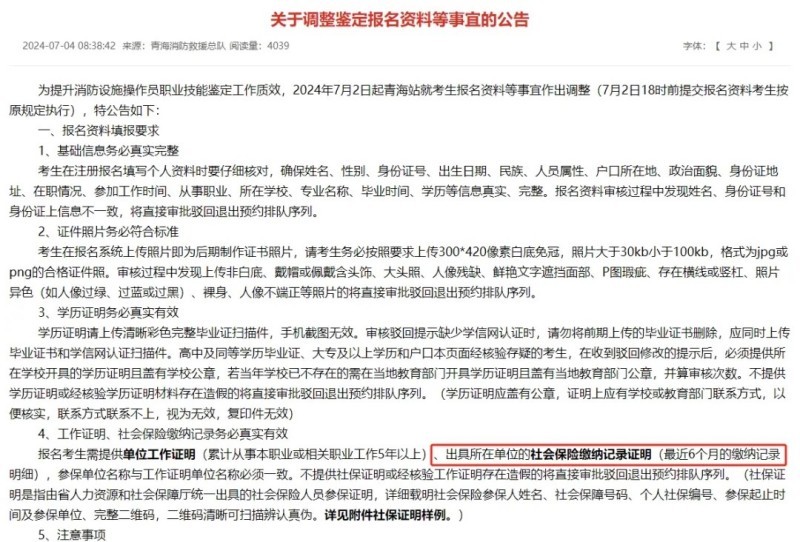 2024年5月,山東、陜西、云南、河南,甘肅5省均要求新增6個(gè)月社保證明。同時(shí),河北站發(fā)布關(guān)于調整報名資料審核公告,新增報名資料真實(shí)性現場(chǎng)抽查環(huán)節。