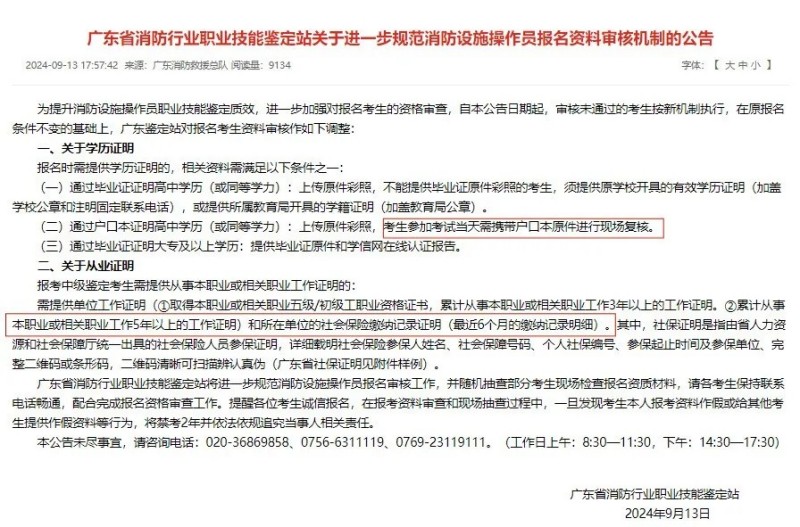 2024年9月13日,廣東站新增6個(gè)月社保證明,并且用戶(hù)口本做學(xué)歷證明的考生需攜帶戶(hù)口本原件進(jìn)行現場(chǎng)復核。